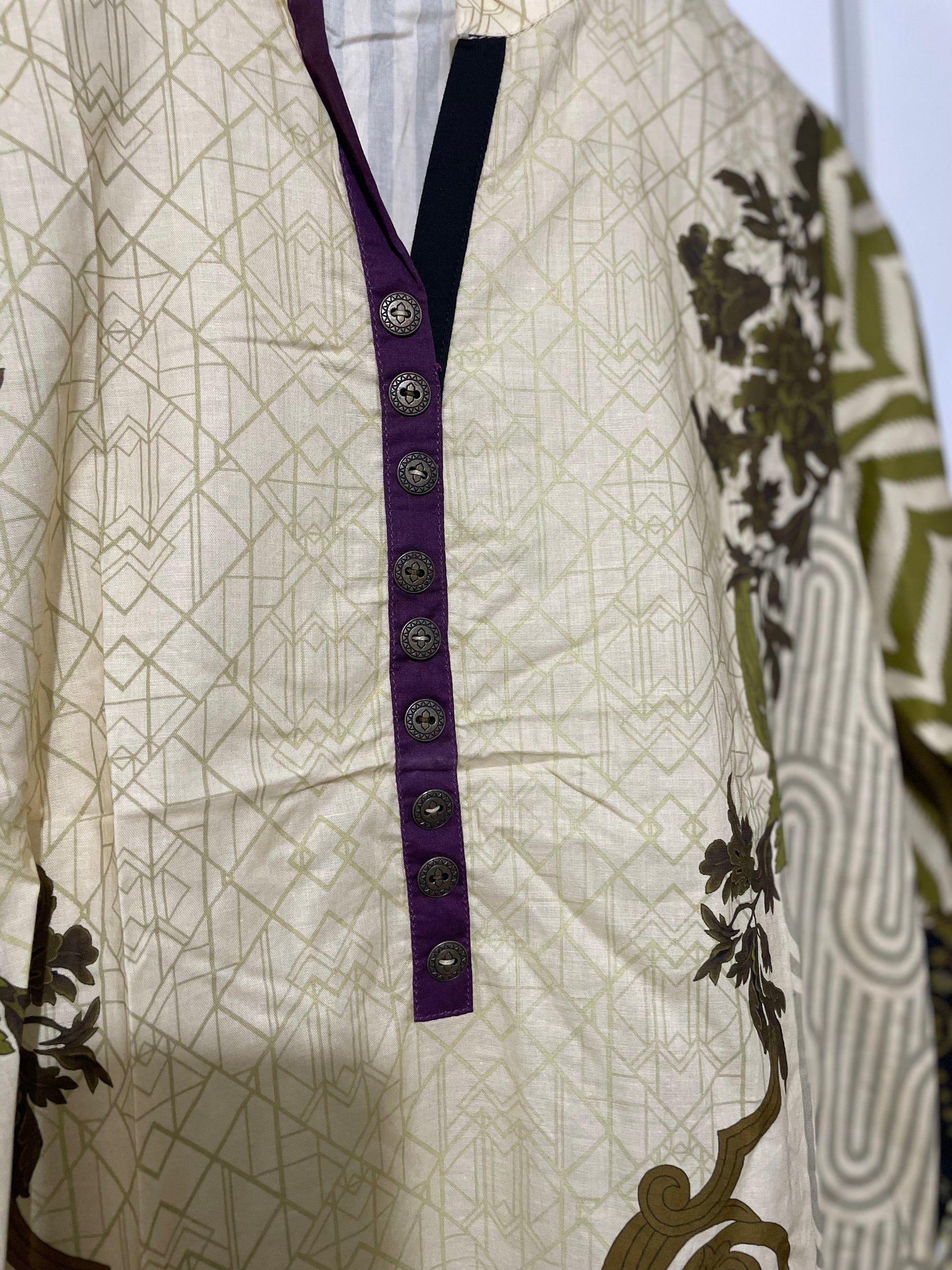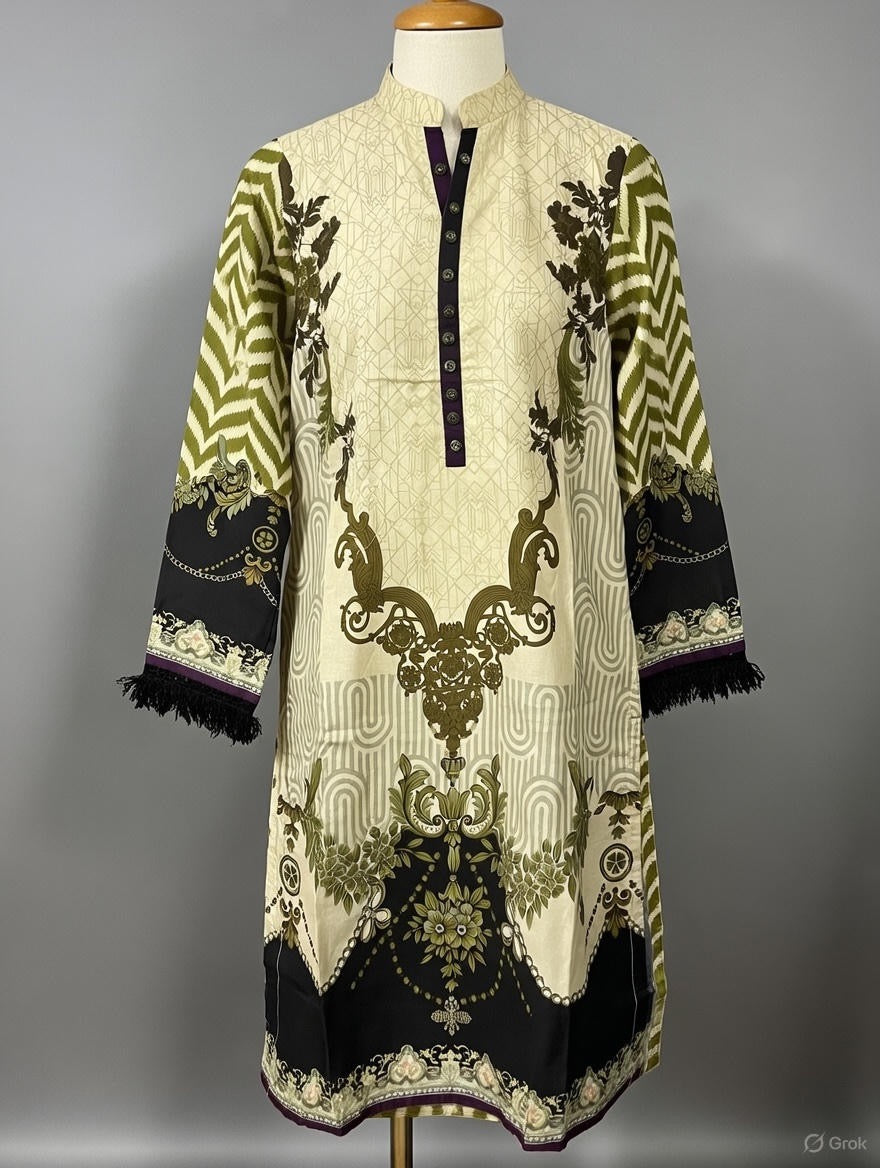 Gul Ahmed lawn cotton casual beige cambric Digital printed shirt kurta with flared long sleeves