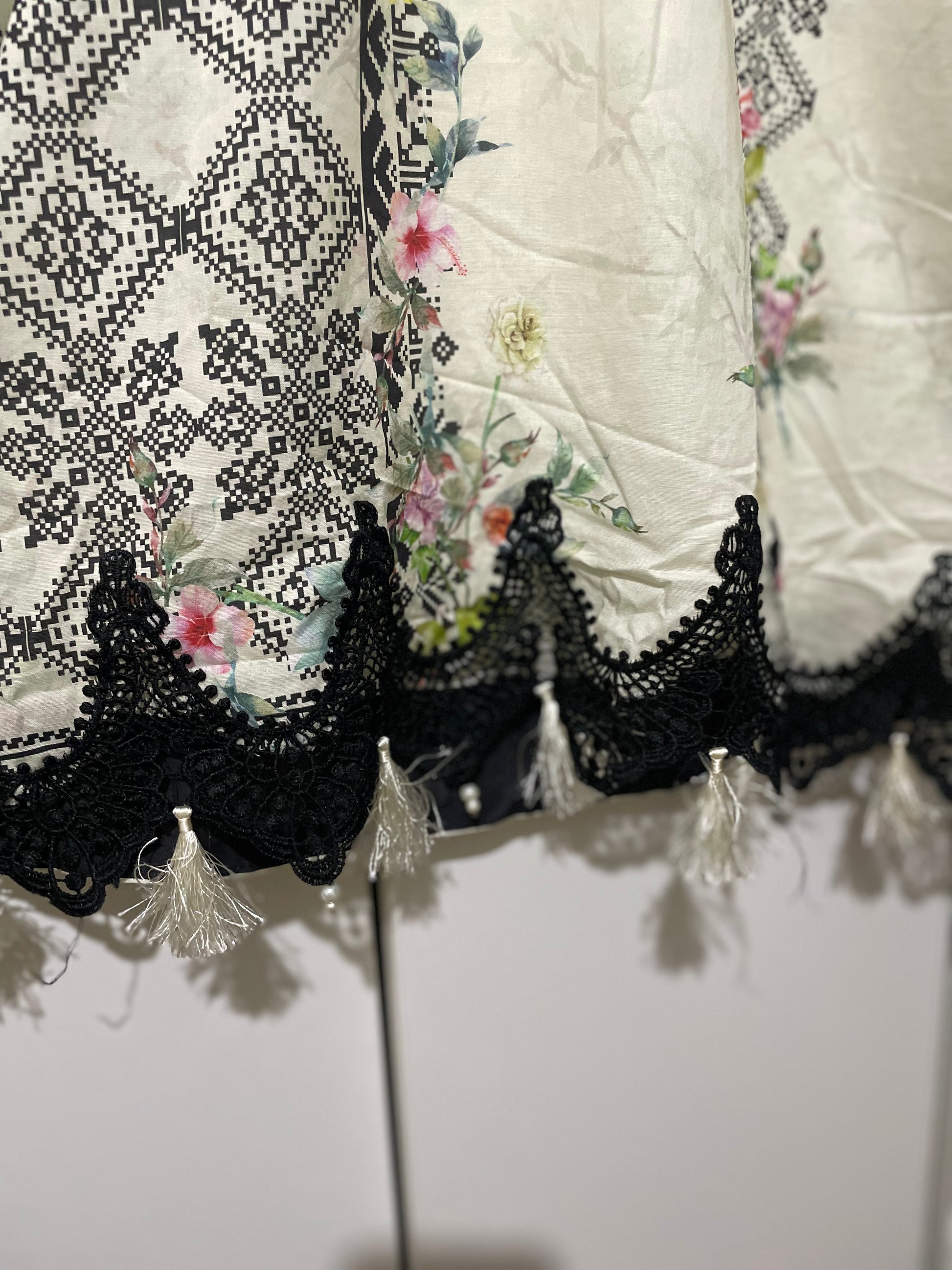 Gul Ahmed off white lawn Digital printed Shurt kurta with wide flared sleeves, v-neckline, flared border lace